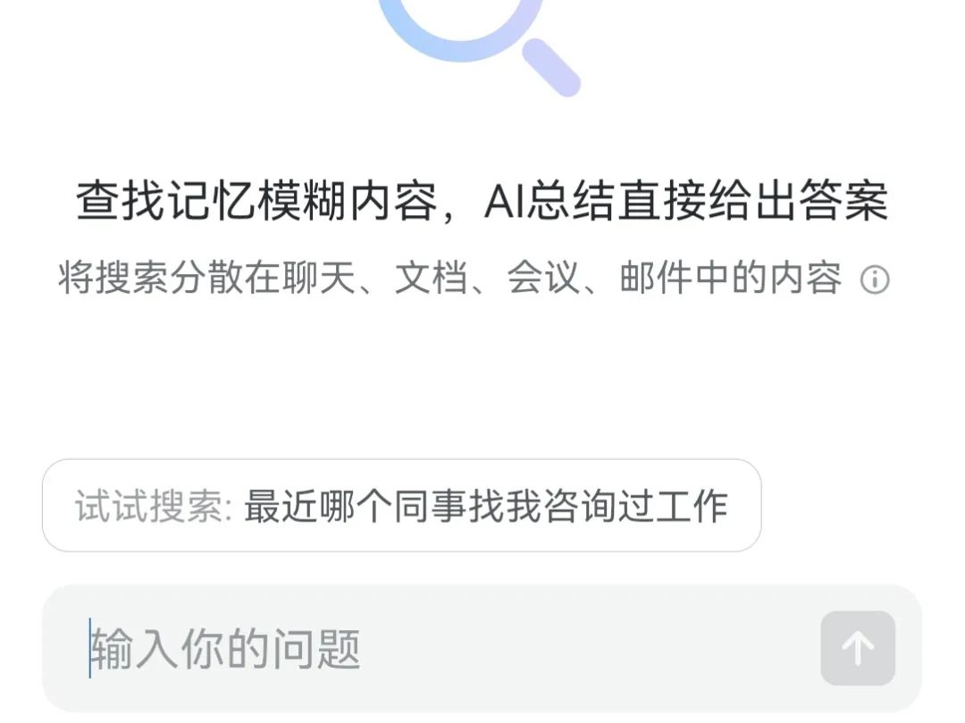【智能搜索】的解决办法是:你可以不用记得当初沟通这件事的关键字,可以描述下大致的情况,腾讯的AI应用就可以推测出你在讲的问题,并且把和这个问题有关的沟通记录都罗列出来。